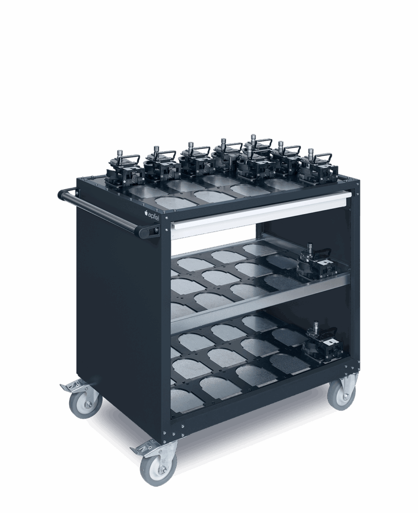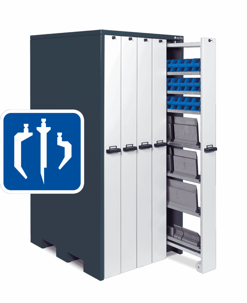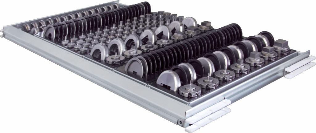 - Reduziert durch schnellen Zugriff kostspielige Rüstzeiten und erhöht durch maßgeschneiderte Halterungen die Lebensdauer der Werkzeuge
