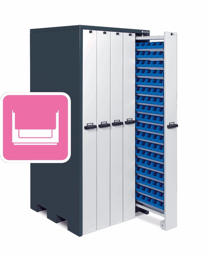 - Ideal um ganze Palettenlager zu komprimieren oder zur punktgenauen Bereitstellung von Werkzeugen direkt an einer Maschine