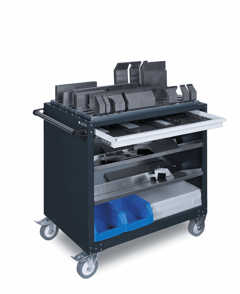- Zum Bereitstellen von Abkantwerkzeugen, Mess- und Hilfsmitteln auf Maschinenhöhe