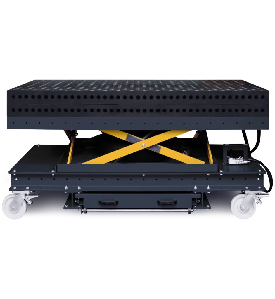 - Mobiler Schweißtisch mit pneumatischer Höhenregulierung