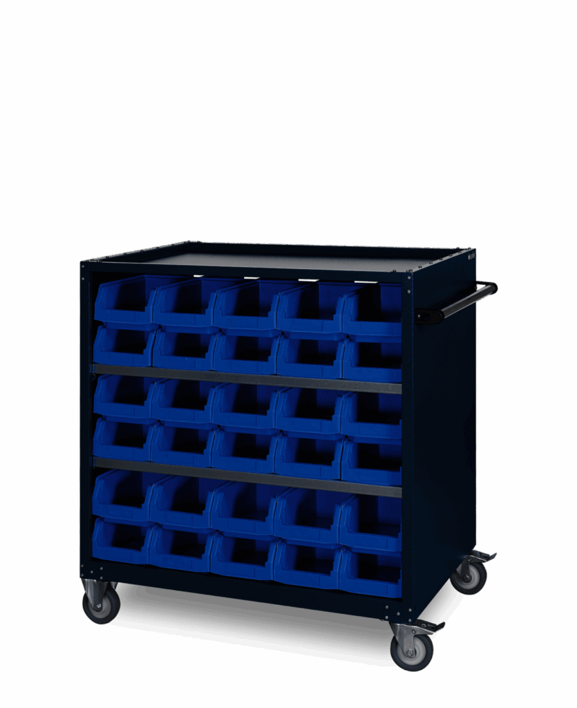 - Transport- und Kommissionierwagen mit einfachen oder doppelten Lagerkästen