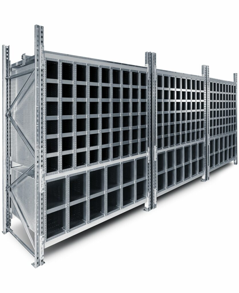 - Individuell konfigurierbar mit Tablarbreiten von 1.250 – 4.050 mm und Tablartiefen von 610 – 1.270 mm