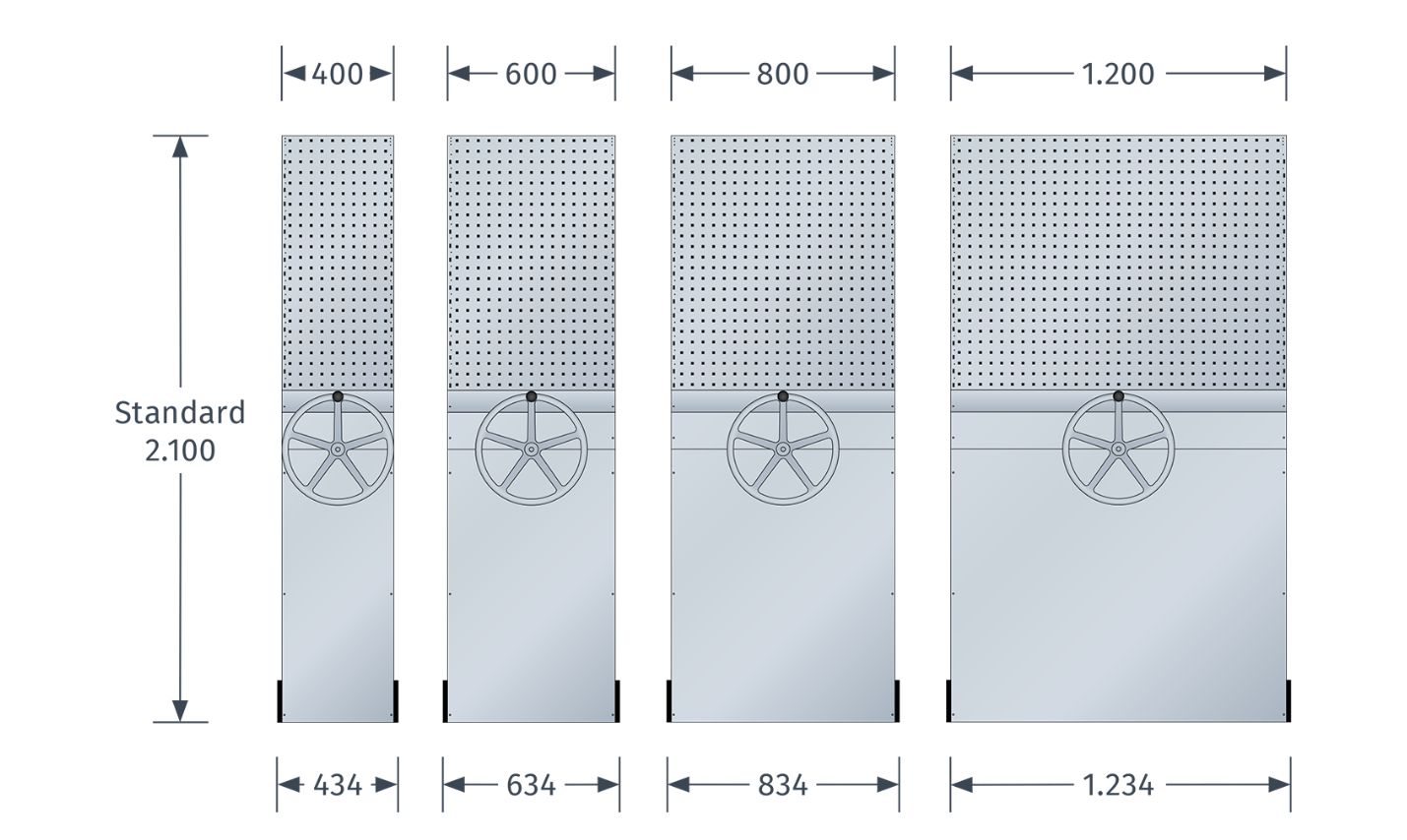 Standardisierte Modulbreiten von 400 mm, 600 mm, 800 mm und 1.200 mm → Auf Wunsch auch kombinierbar